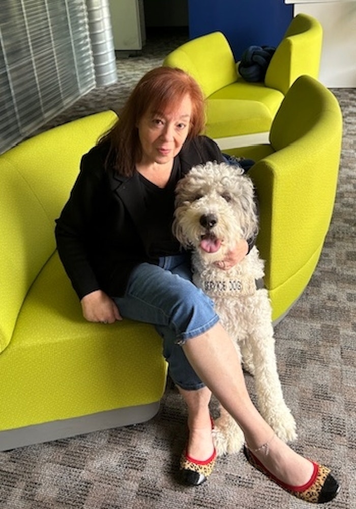 A native New Yorker now based in metro Atlanta, Pamela lives with Stormi, her service dog-in-training.